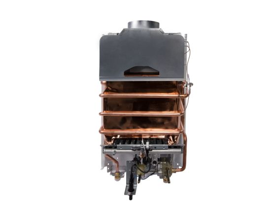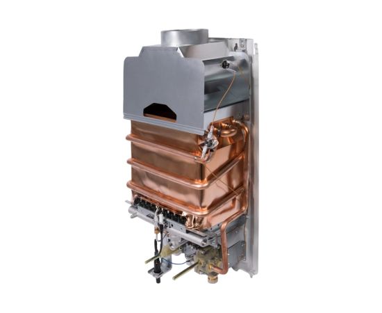 -Теплообменник из бескислородной меди. Во всех газовых водонагревателях Royal Thermo установлен современный теплообменник из бескислородной меди. Применение новейшей технологии обеспечивает нагревательному элементу стойкость к коррозии, повышает его надежность и увеличивает долговечность. Отсутствие в составе вредных для здоровья металлов делает работу водонагревателя безопасной для здоровья человека и окружающей среды.