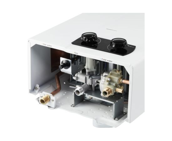 -Работа при низком давлении воды и газа. Водонагреватель сохраняет бесперебойную работу даже при очень низком давлении воды и газа. Минимальное давление воды на включение составляет 0.15 бар, газа – 6.8 мбар.