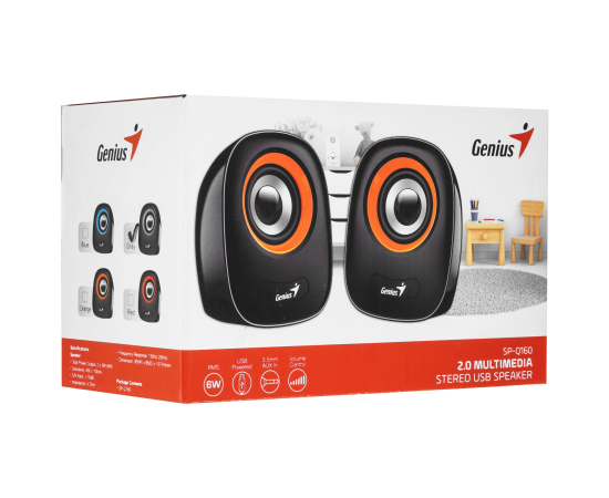 Акустическое оформление Genius SP-Q160 в виде закрытого ящика гарантирует чистое воспроизведение джазовой, инструментальной, классической музыки, а также указывает на компактные размеры аксессуара. При подключении к смартфону, планшету, ноутбуку используется выход 3.5 Jack.