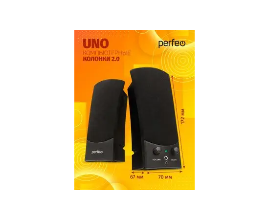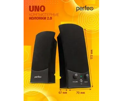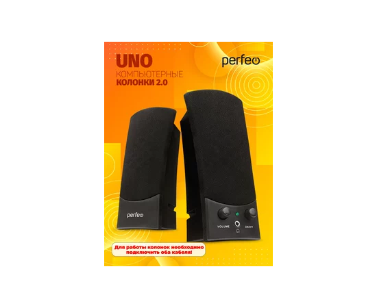 Колонки Perfeo"UNO" 2.0, мощность 2х1.5 Вт (RMS), цвет чёрный, USB