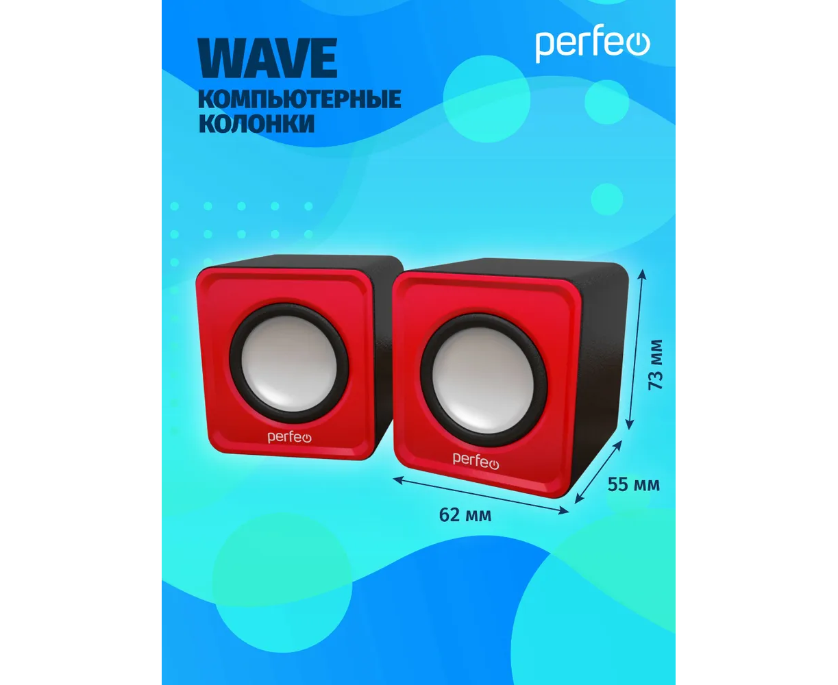 Колонки Perfeo"WAVE" 2.0, мощность 2х3Вт (RMS), красный, USB