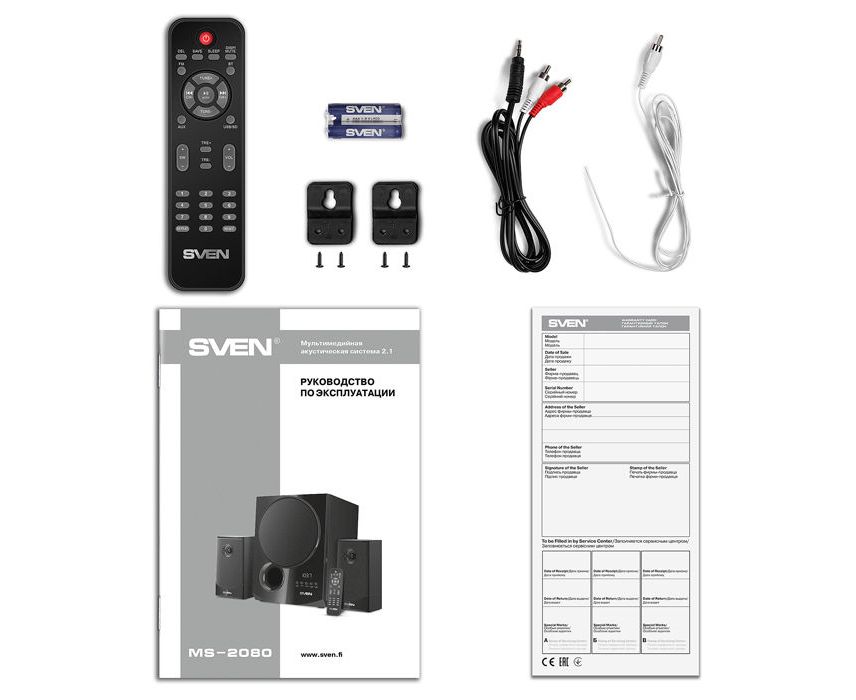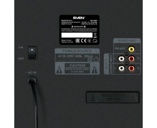 Акустическая система 2.1 SVEN АС MS-2080, черный (70 Вт, Bluetooth, пульт, дисплей, FM, USB, SD)