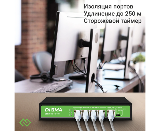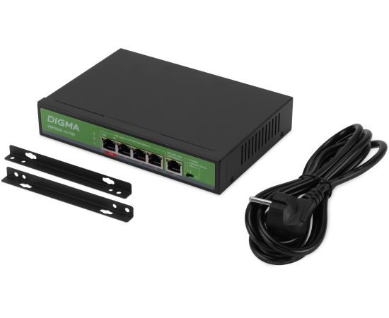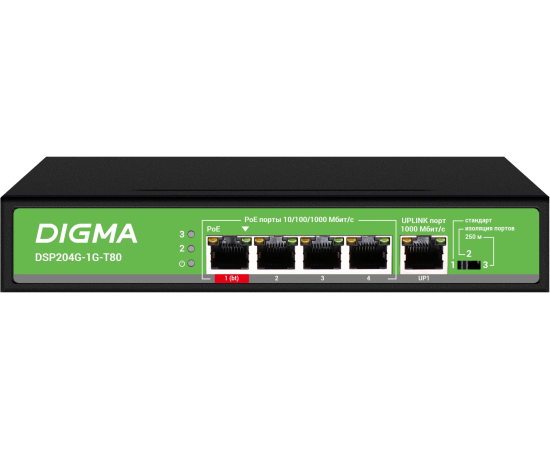 Коммутатор Digma DSP204G-1G-T80 (L2) 5x1Гбит/с 4PoE 4PoE+ 1PoE++ 80W неуправляемый