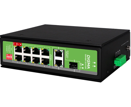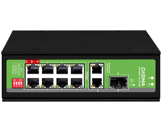 Коммутатор неуправляемый Digma DSP408F-2G1S-300 (L2) 8x100Мбит/с 2x1Гбит/с 1SFP 8PoE 8PoE+ 1PoE++ 300W