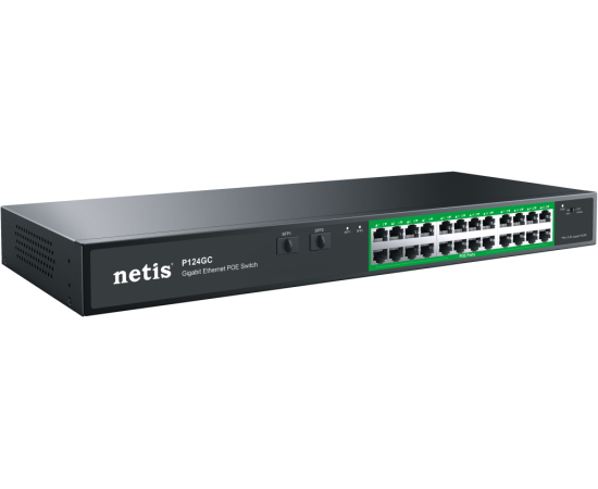 Коммутатор неуправляемый Netis P124GC PoE+, 26 портов, 24x1Гбит/с, PoE+ 24х30Вт (до 360Вт), Uplink SFP 2x1Гбит/с