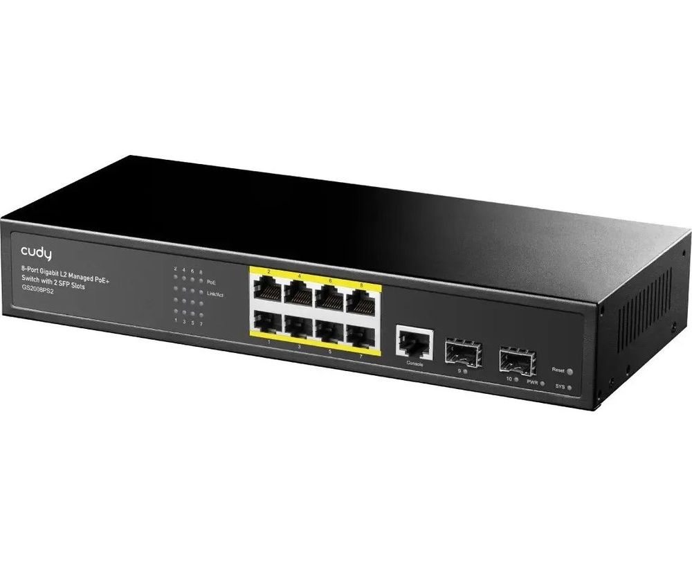 Коммутатор управляемый Cudy GS2008PS2 (L2) 8x1Гбит/с 2SFP 8PoE+ 120W