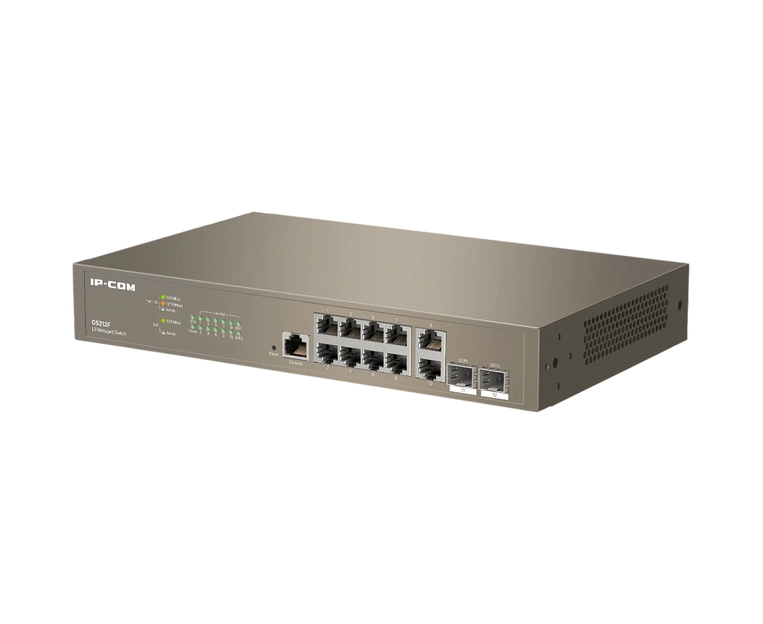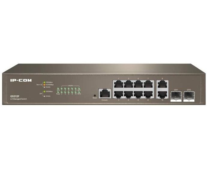 Коммутатор управляемый L3 IP-COM G5312F 12 портов, 10х1 Гбит/с, Base-X SFP 2х1 Гбит/с, настольный