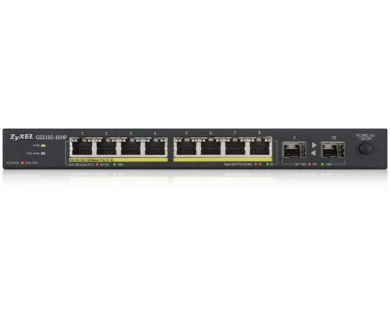 Коммутатор Zyxel GS1100-10HP v2 (GS1100-10HP-EU0102F) 8G 2SFP 8PoE+ 130W неуправляемый