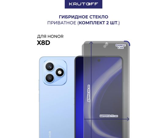 Комплект из 2-х защитных гибридных стекол Антишпион Krutoff для Honor X8d
