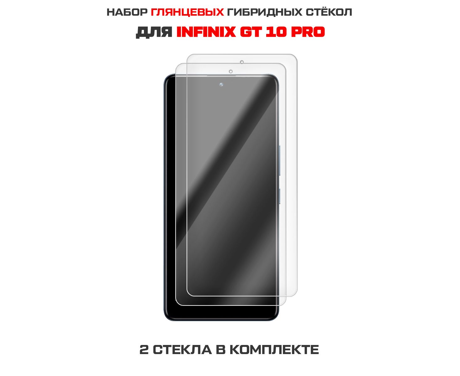 Комплект из 2-х защитных гибридных стекол Krutoff для INFINIX GT 10 Pro