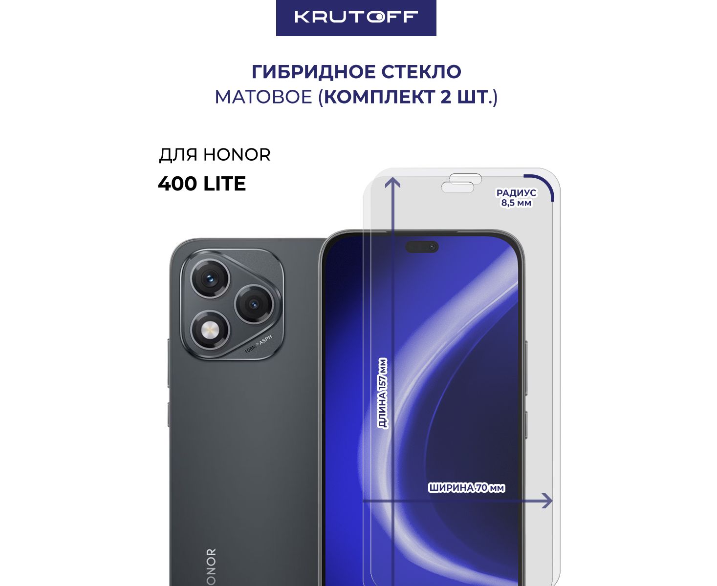 Комплект из 2-х защитных гибридных стекол МАТОВЫХ Krutoff для Honor 400 Lite