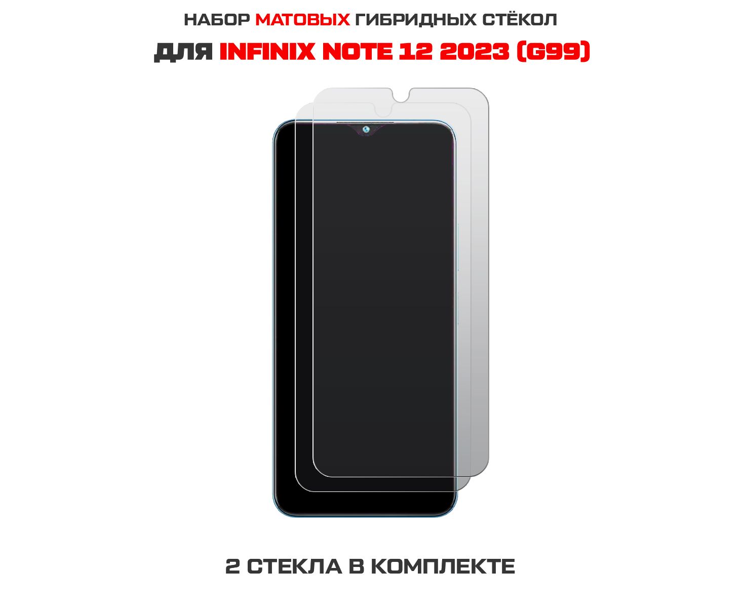 Комплект из 2-х защитных гибридных стекол МАТОВЫХ Krutoff для INFINIX Note 12 2023 (G99)