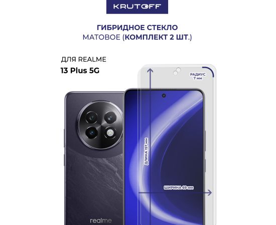 Комплект из 2-х защитных гибридных стекол МАТОВЫХ Krutoff для Realme 13+ 5G