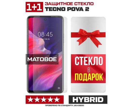 Комплект из 2-x защитных гибридных стекол МАТОВЫХ Krutoff для Tecno Pova 2