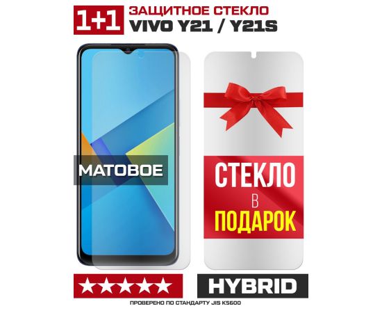 Комплект из 2-x защитных гибридных стекол МАТОВЫХ Krutoff для Vivo Y21/Y21s
