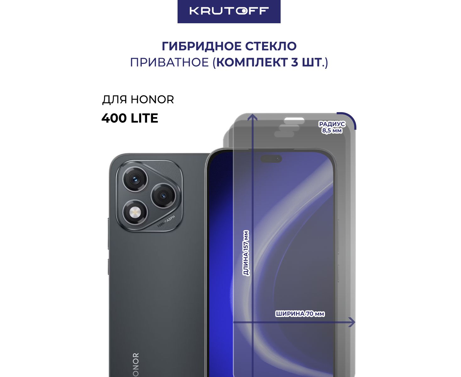 Комплект из 3-х защитных гибридных стекол Антишпион Krutoff для Honor 400 Lite