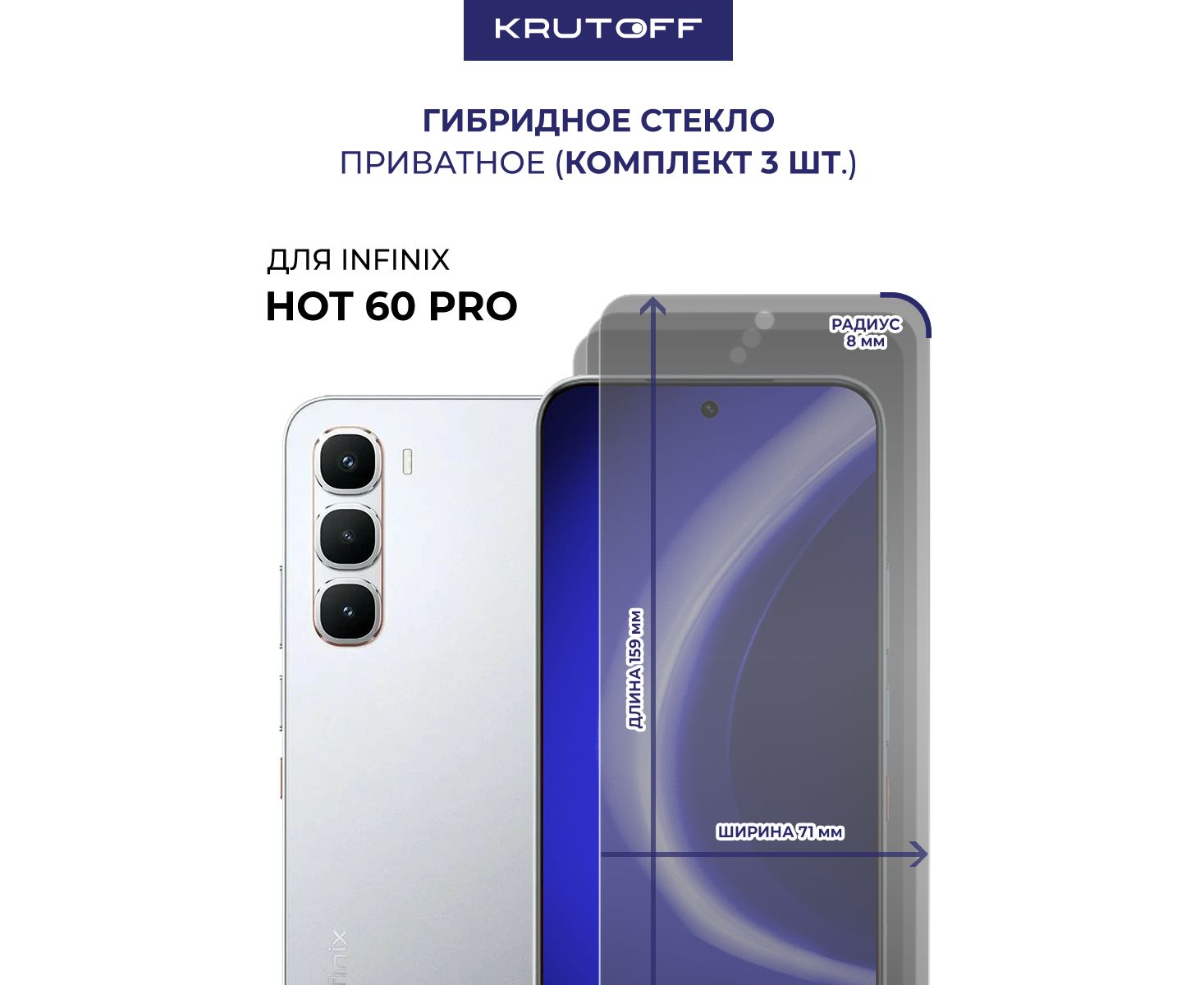 Комплект из 3-х защитных гибридных стекол Антишпион Krutoff для INFINIX Hot 60 Pro