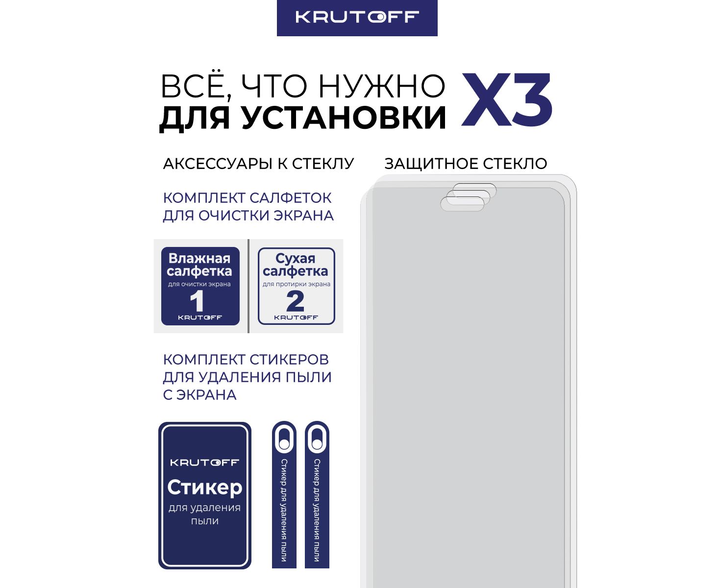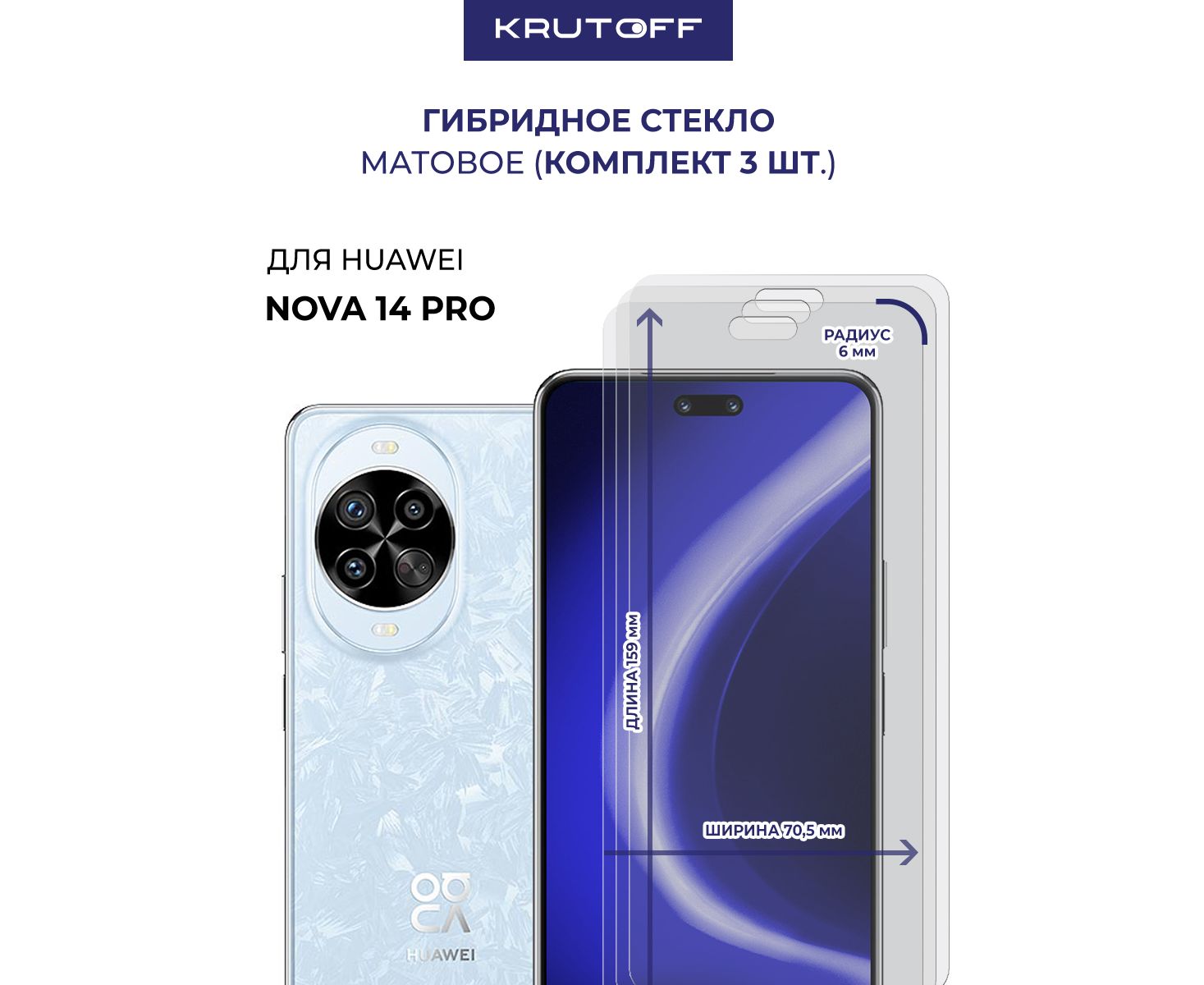 Комплект из 3-х защитных гибридных стекол МАТОВЫХ Krutoff для Huawei Nova 14 Pro