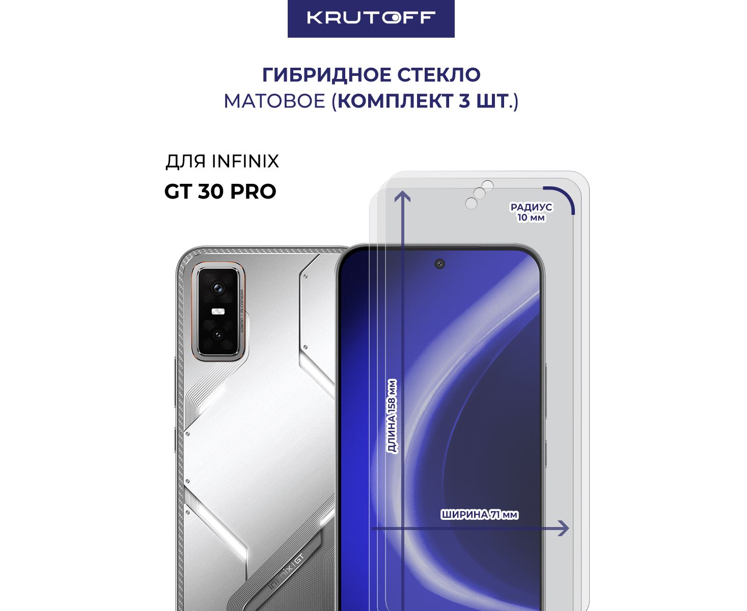 Комплект из 3-х защитных гибридных стекол МАТОВЫХ Krutoff для INFINIX GT 30 Pro