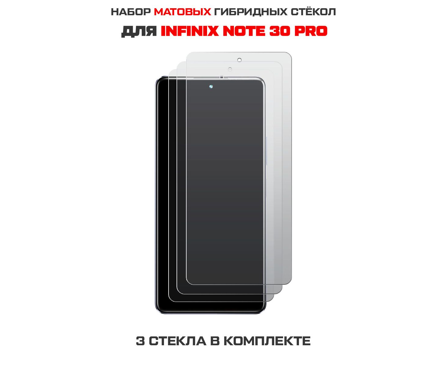 Комплект из 3-х защитных гибридных стекол МАТОВЫХ Krutoff для INFINIX Note 30 Pro