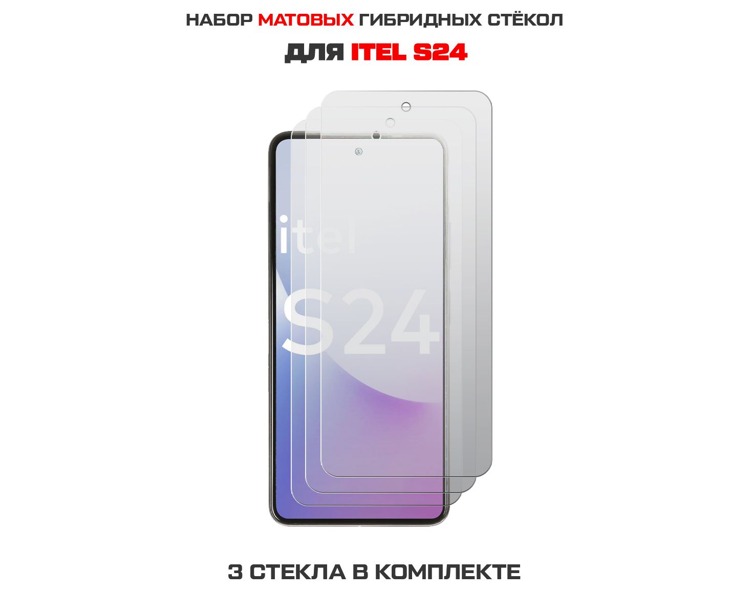 Комплект из 3-х защитных гибридных стекол МАТОВЫХ Krutoff для ITEL S24