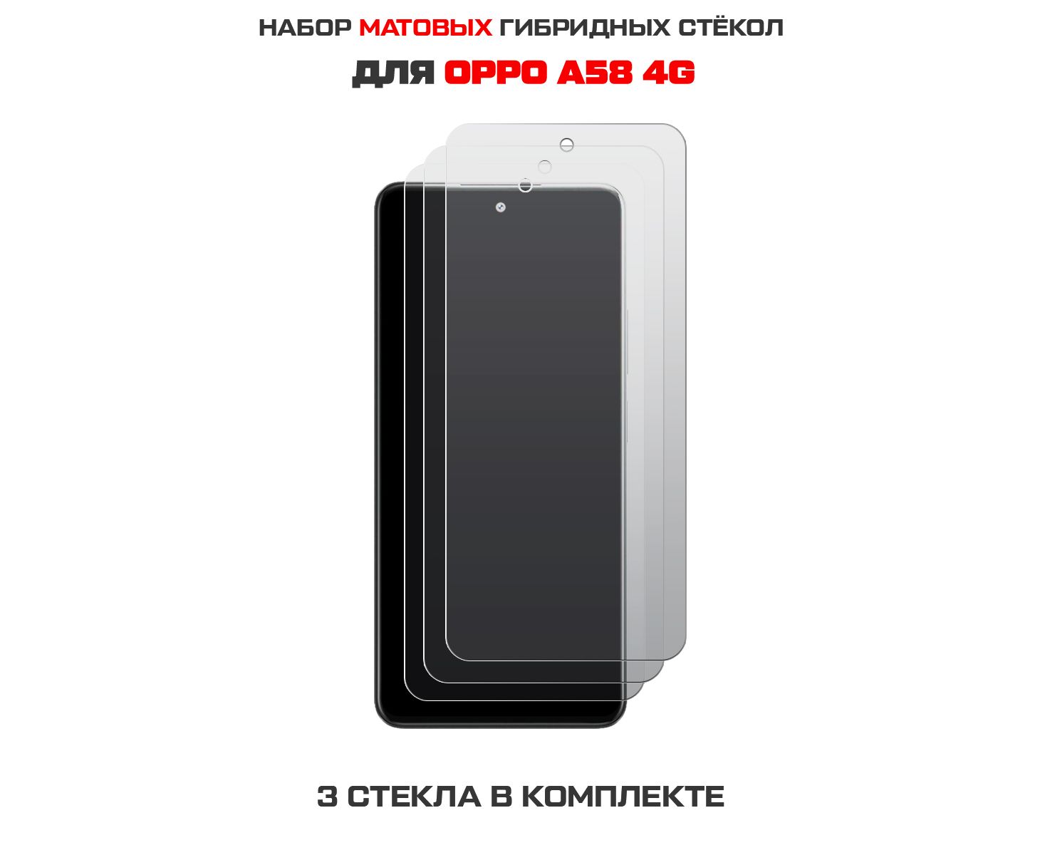 Комплект из 3-х защитных гибридных стекол МАТОВЫХ Krutoff для Oppo A58 4G