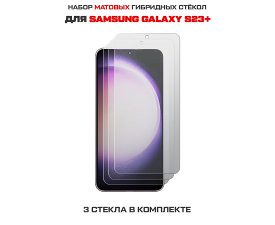 Комплект из 3-х защитных гибридных стекол МАТОВЫХ Krutoff для Samsung Galaxy S23+