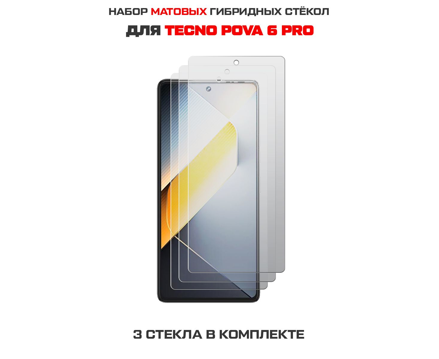 Комплект из 3-х защитных гибридных стекол МАТОВЫХ Krutoff для TECNO Pova 6 Pro