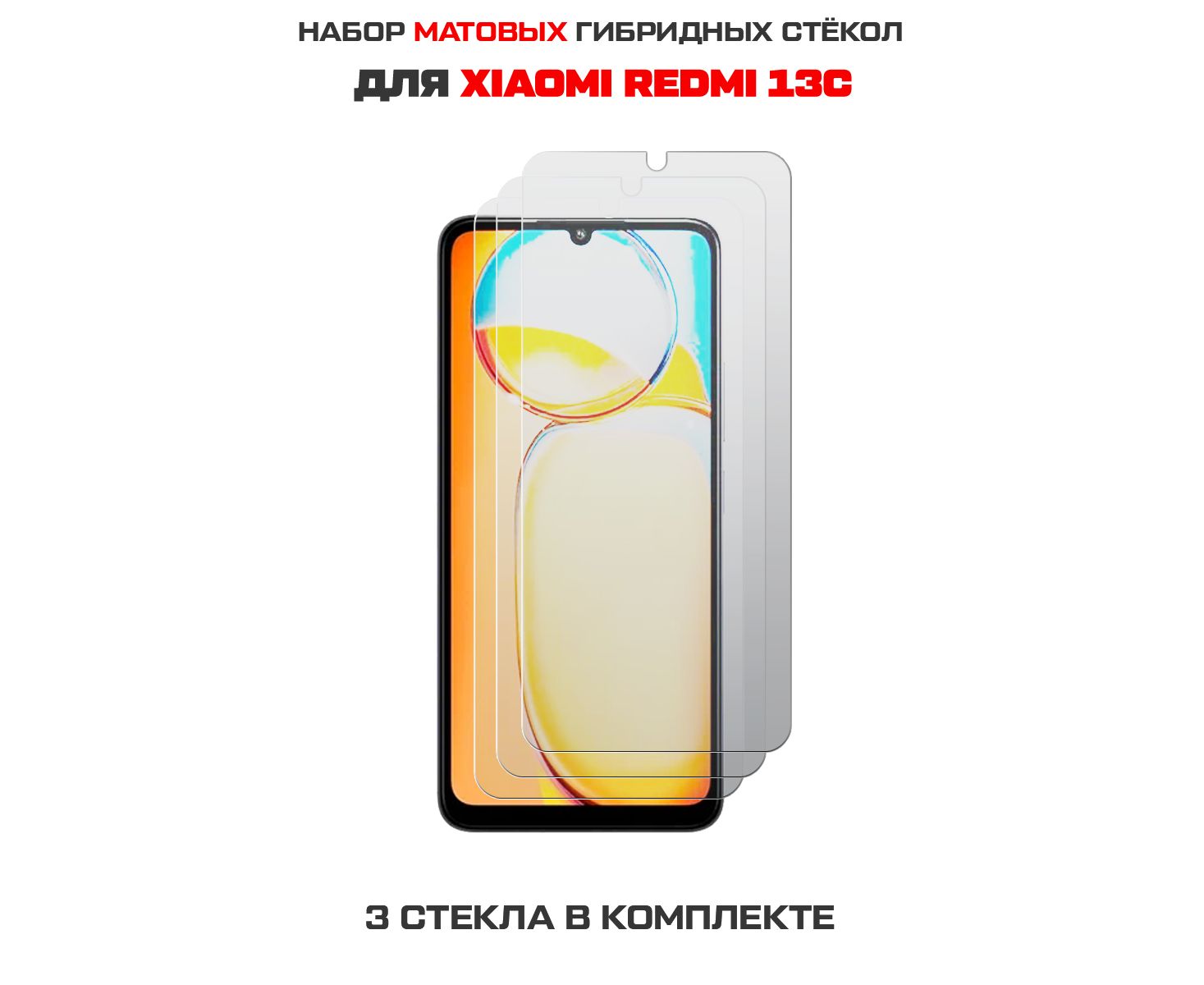 Комплект из 3-х защитных гибридных стекол МАТОВЫХ Krutoff для Xiaomi Redmi 13C