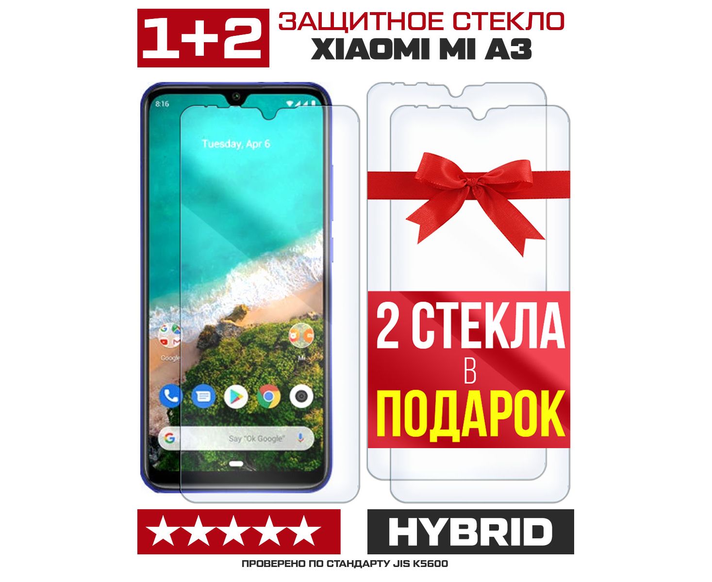 Комплект из 3-x защитных гибридных стекл для Xiaomi Mi A3