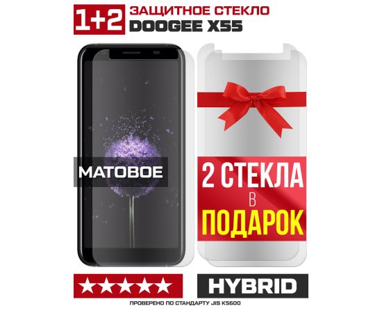 Комплект из 3-x защитных гибридных стекол МАТОВЫХ Krutoff для Doogee X55