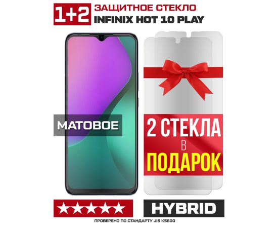 Комплект из 3-x защитных гибридных стекол МАТОВЫХ Krutoff для INFINIX Hot 10 Play