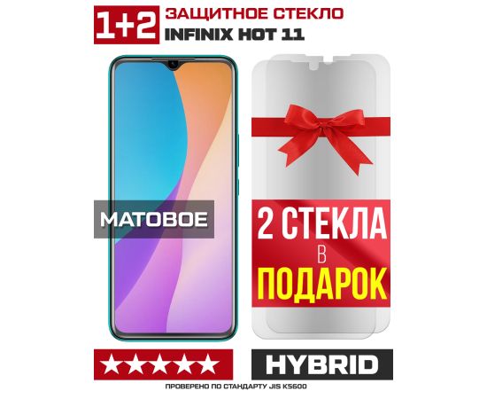 Комплект из 3-x защитных гибридных стекол МАТОВЫХ Krutoff для INFINIX Hot 11