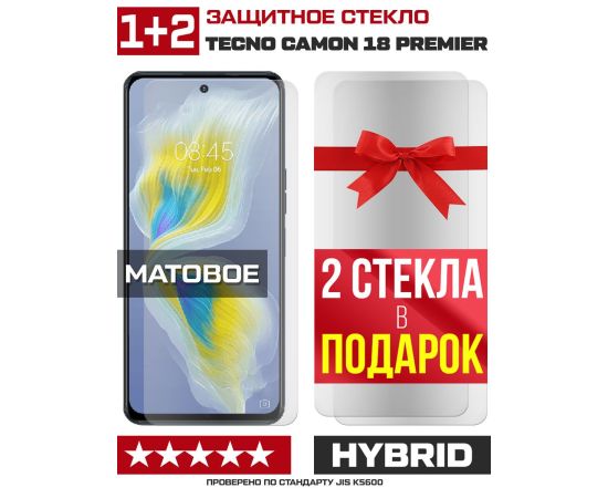 Комплект из 3-x защитных гибридных стекол МАТОВЫХ Krutoff для Tecno Camon 18 Premier