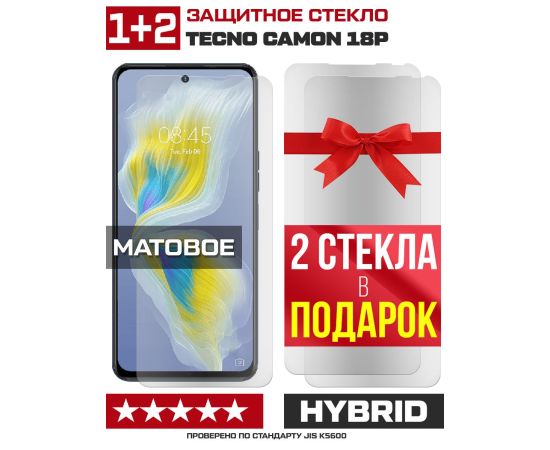 Комплект из 3-x защитных гибридных стекол МАТОВЫХ Krutoff для Tecno Camon 18P