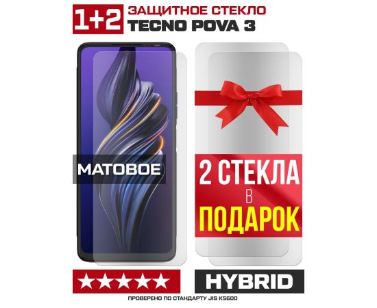 Комплект из 3-x защитных гибридных стекол МАТОВЫХ Krutoff для Tecno Pova 3