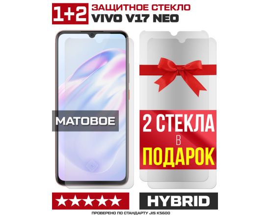 Комплект из 3-x защитных гибридных стекол МАТОВЫХ Krutoff для Vivo V17 Neo