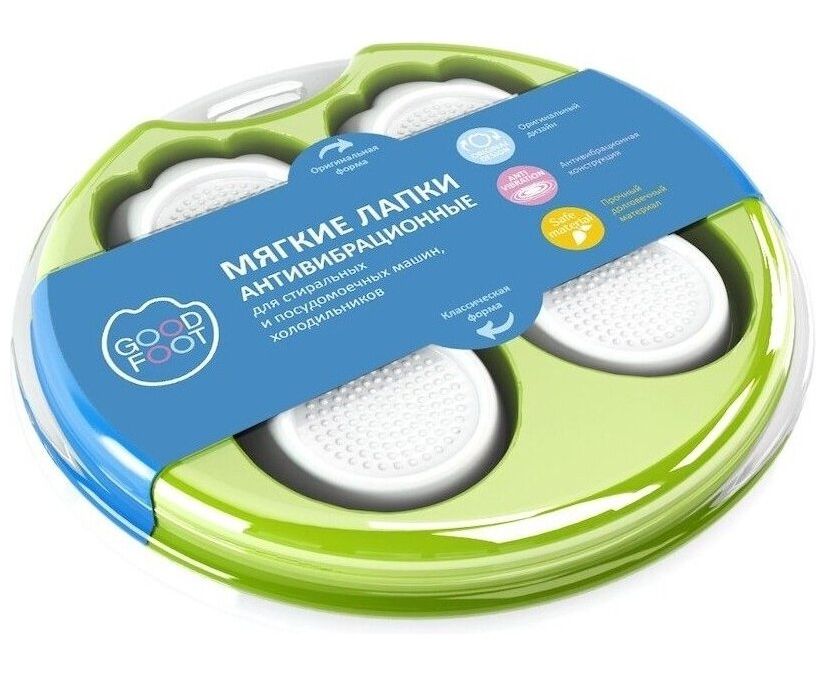 Конструкция с рёбрами жёсткости эффективно поглощает вибрацию, а также равномерно распределяет нагрузку на пол. Благодаря рельефной поверхности лапок ножки техники не скользят.