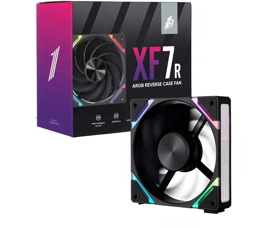 Комплект вентиляторов (3 шт.) 1STPLAYER XF7R Black (XF7R-BK-3IN1) / 120mm Reverse ARGB 3pin 5V PWM 4pin 12V 600-2000rpm 56.8cfm 33.12dBA