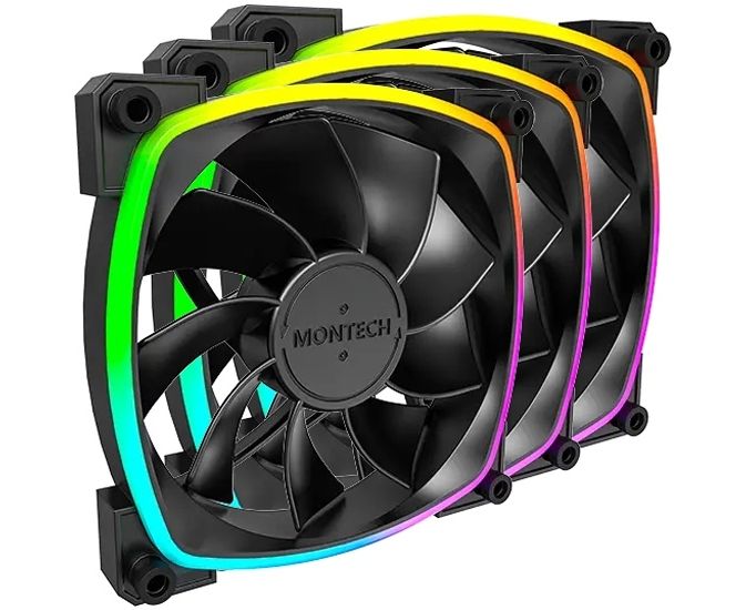 Комплект вентиляторов (3 шт.) Montech RX120 PWM Reverse Black (RX120B3P) / 120mm, 4pin PWM, 3pin ARGB, 800-1600RPM, 59.0CFM, 27.0dBA, Rifle bearing