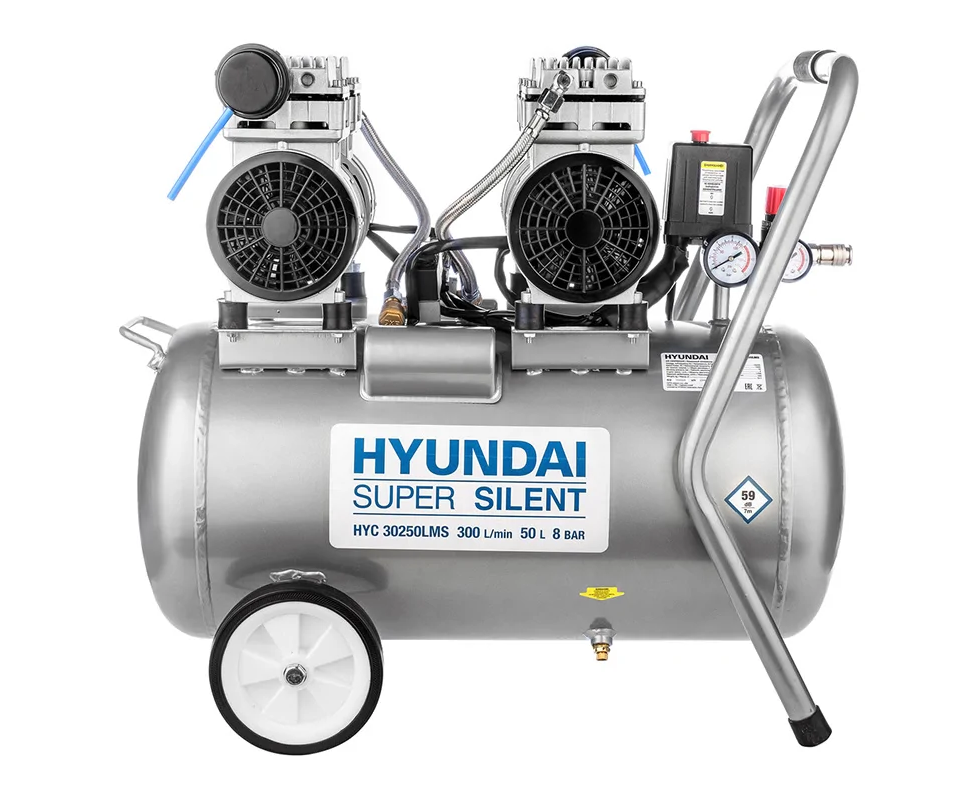 Компрессор поршневой Hyundai HYC 30250LMS безмасляный серебристый/черный