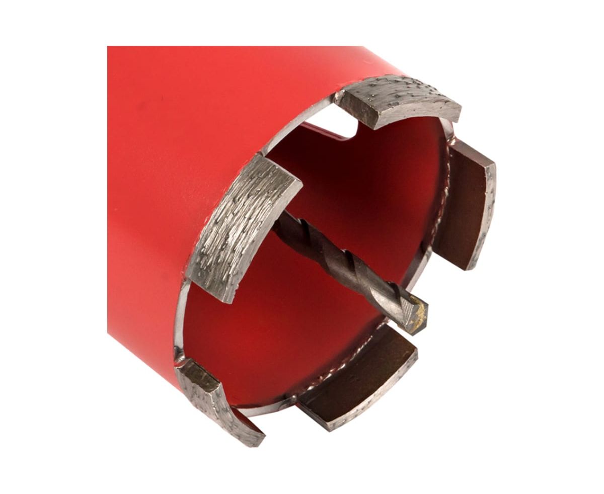 Коронка алмазная служит для сухой резки в бетоне, кирпиче, природном и искусственном камне и плотном известняке с помощью перфоратора с отключенной функцией удара. Имеет 5 режущих сегментов с увеличенным количеством вскрытых промышленных алмазов для высокой скорости реза. Удобная система быстрого снятия центрирующего сверла для увеличения скорости реза и сохранения ресурса инструмента.