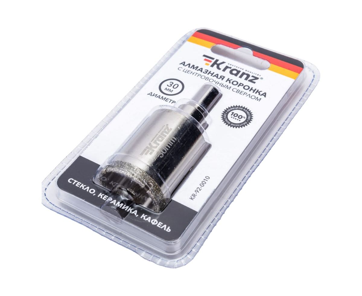 Коронка алмазная по керамограниту с центровочным сверлом KRANZ KR-92-0010 30 мм
