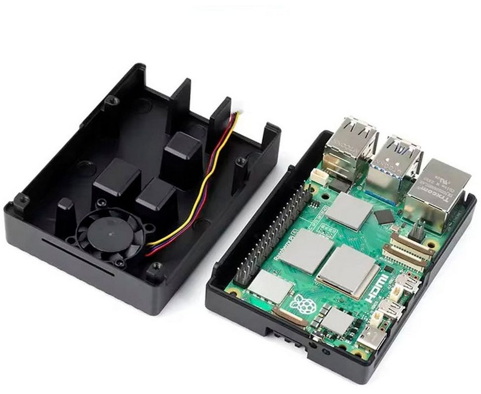 Особенности Совместимость с одноплатными микрокомпьютерами Raspberry PI 5 Состоит из двух частей, крепящихся снизу и сверху на плате микрокомпьютера.