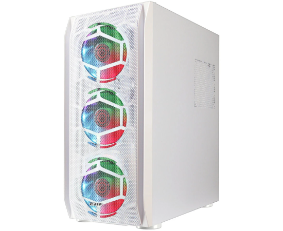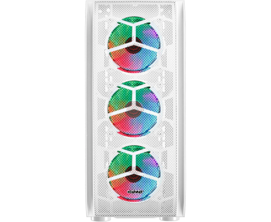 Корпус Ginzzu GL 390 боковая дверца закаленное стекло на петлях на магнитах, controller CRC10, 4* 12R6W Fan 12см RGB белый