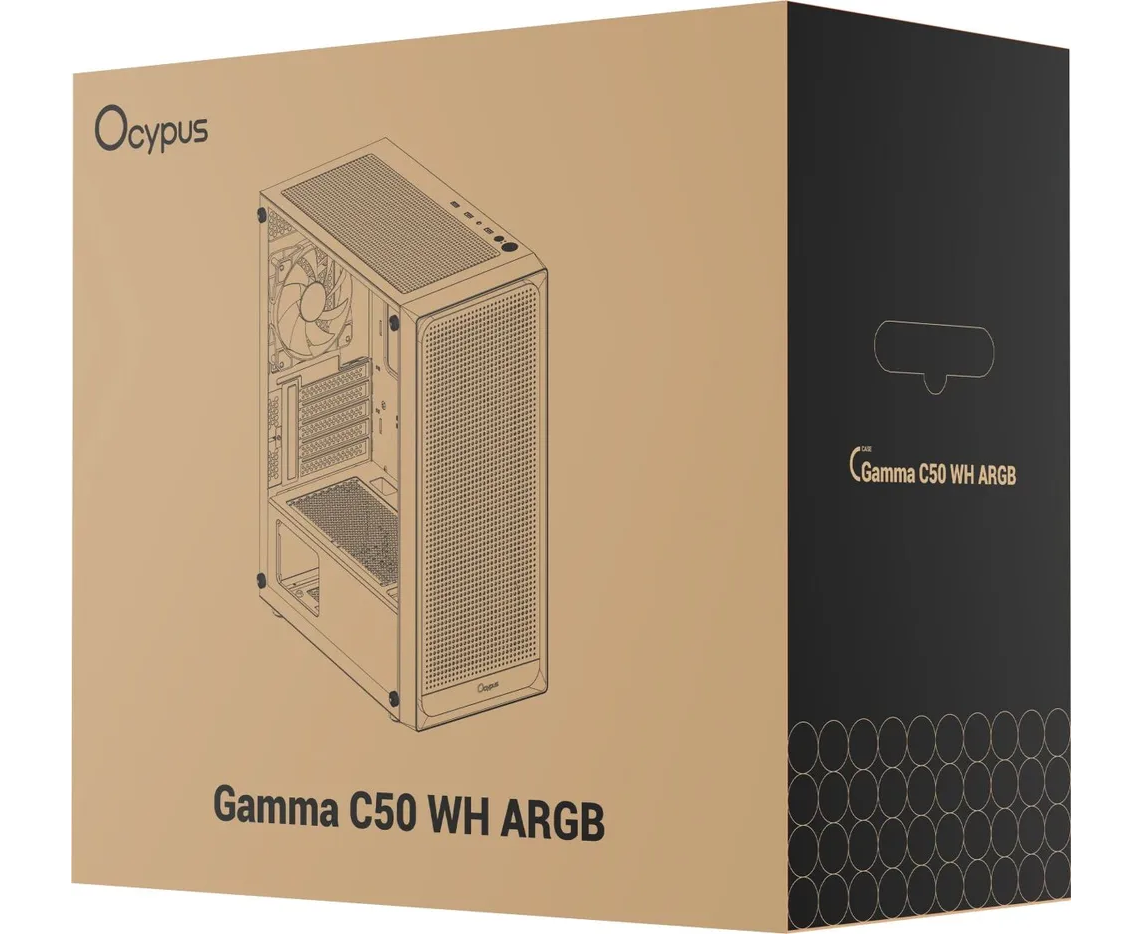 Корпус Ocypus Gamma C50 WH ARGB, MATX, USB3.0*1+USB2.0*2, FRONT 3x120mm ARGB, REAR 1x120mm ARGB
