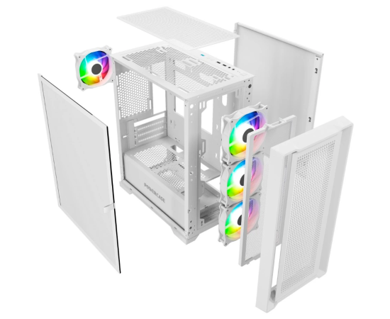 Корпус Powercase Alisio Micro X4W V2 (CAMCXW-A4), Tempered Glass, 4х 120mm ARGB fans, ARGB HUB, белый, mATX