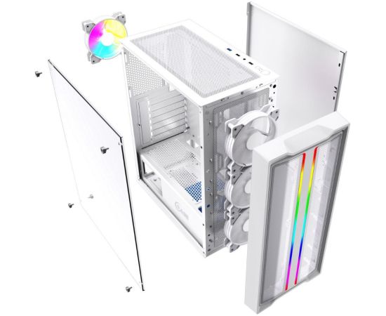 Корпус Powercase Mistral Evo White, Tempered Glass, 1x 120mm PWM ARGB fan + ARGB Strip + 3x 120mm PWM non LED fan, белый, ATX (CMIEW-F4S)
