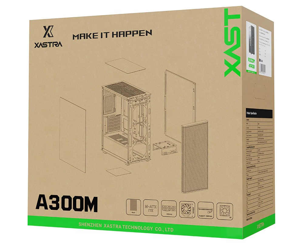 Корпус XASTRA A300M 4ARGB-C6 Black (A300M-4FG12A-C6) mATX/Mesh/ Srewless full-size TG/ 4x120mm FG120 ARGB PWM fans/Argb+PWM HUB 6ports/