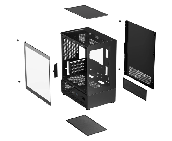 Корпус XASTRA Q300M 3ARGB-C6 Black (Q300M-3FM12A-C6) mATX/Aquarium/Screewless/ 3x120mm ARGB PWM FM fans/Argb+PWM Hub 6port